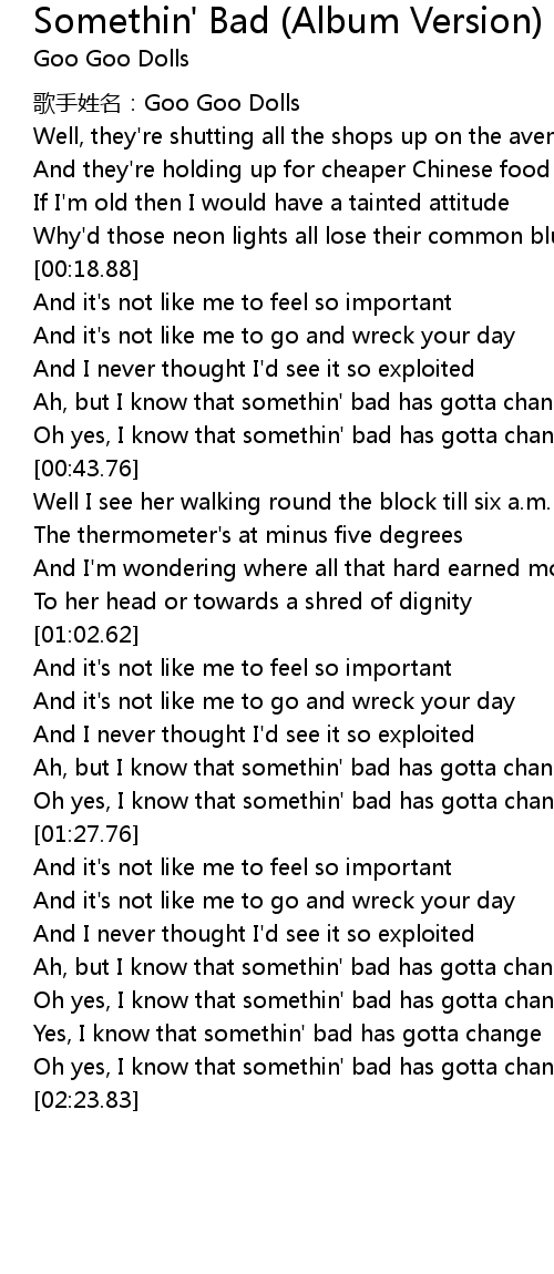 | [00:34.28] | Ah, but I know that somethin' bad has gotta change |