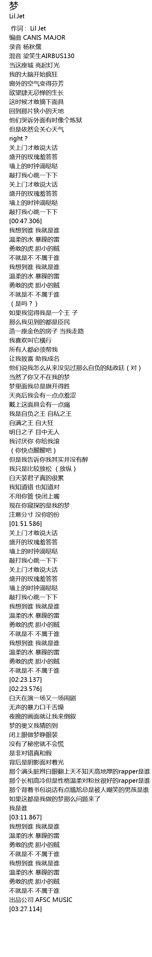 | [00:00.000] | 作词 : Lil Jet |
