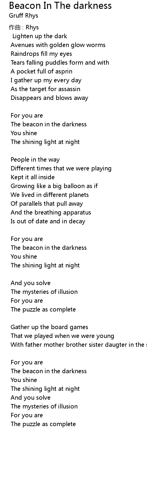 | Song | Beacon In The darkness |
