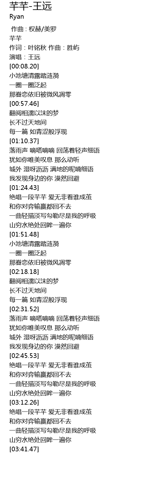 | [00:06.78] | yǎn chàng: wáng yuǎn |
