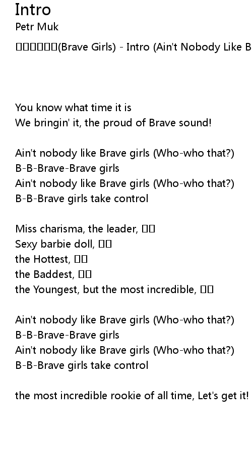 | Brave Girls Intro Ain' t Nobody Like Brave Girls | |