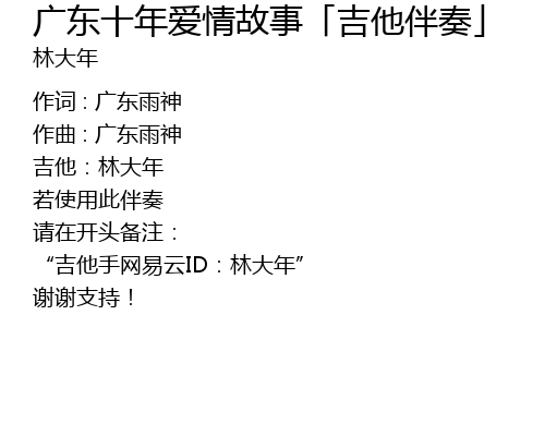 | Song | 广东十年爱情故事「吉他伴奏」 |