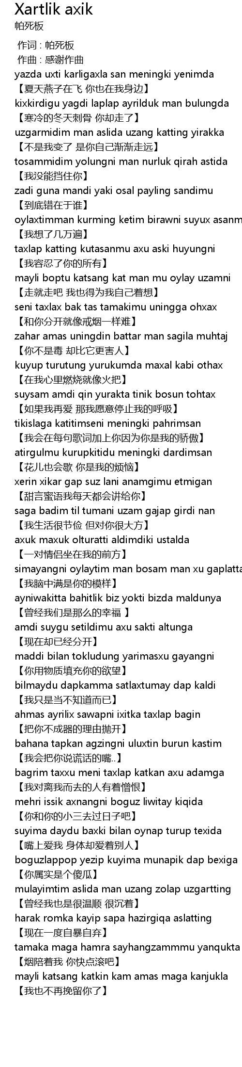 | [02:24.180] | mulayimtim aslida man uzang zolap uzgartting |