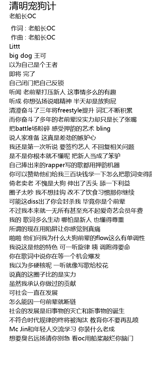 | [00:01.000] | 作曲 : 老船长OC |