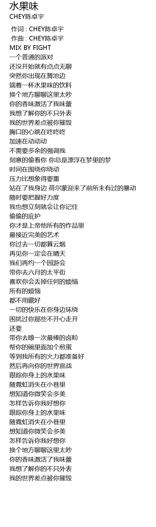 | [00:00.000] | 作词 : CHEY陈卓宇 |