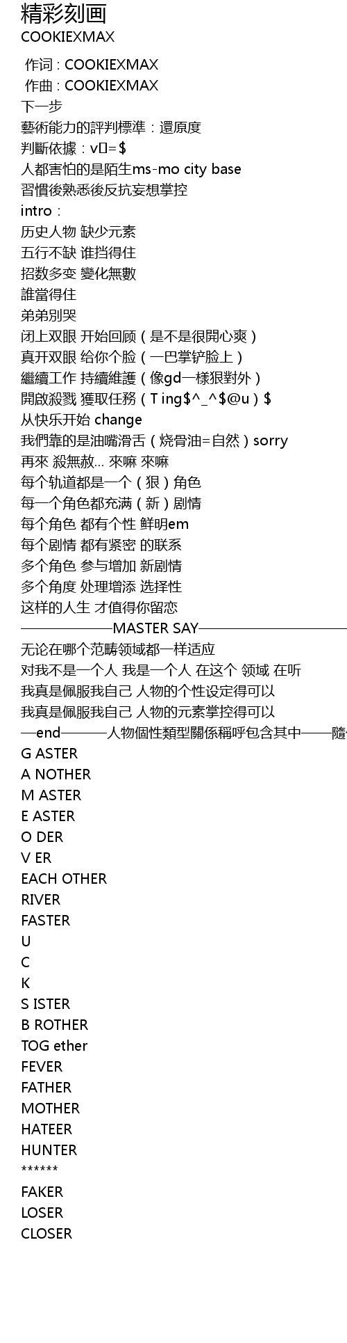 | [00:00.000] | 作词 : COOKIEXMAX |