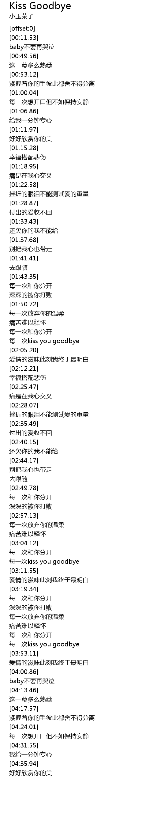 | [03:50.25] | mei yi ci kiss you goodbye |