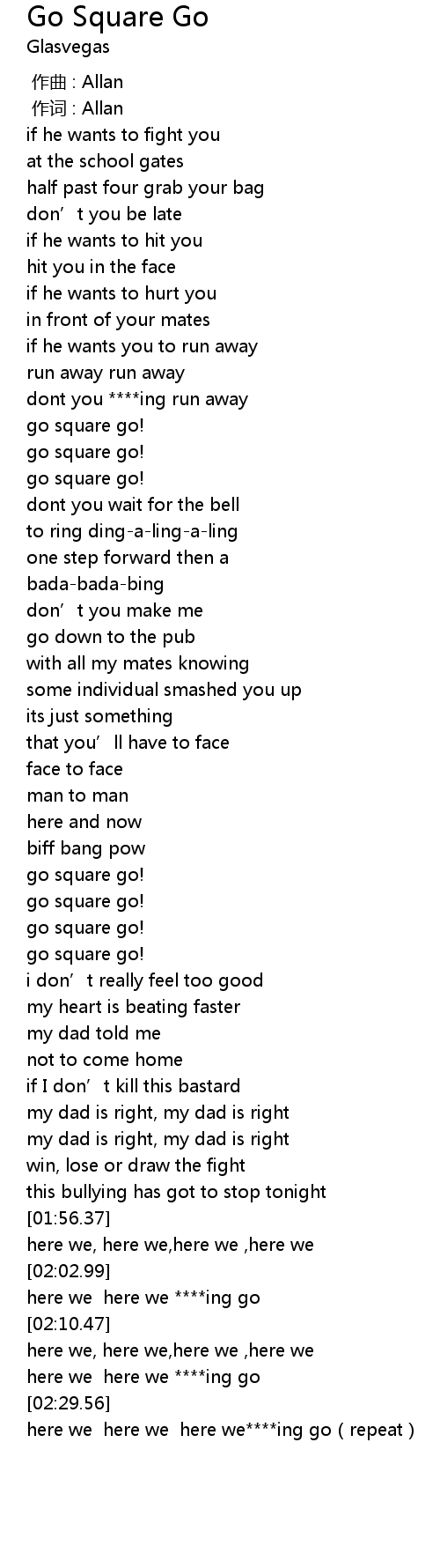 | [02:30.69] | here we here we here we****ing go(repeat) |