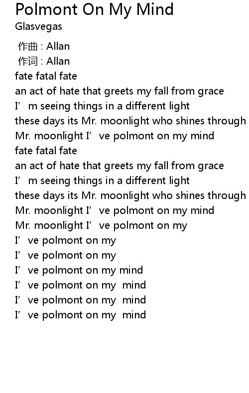 | [03:08.80] | I’ve polmont on my mind |