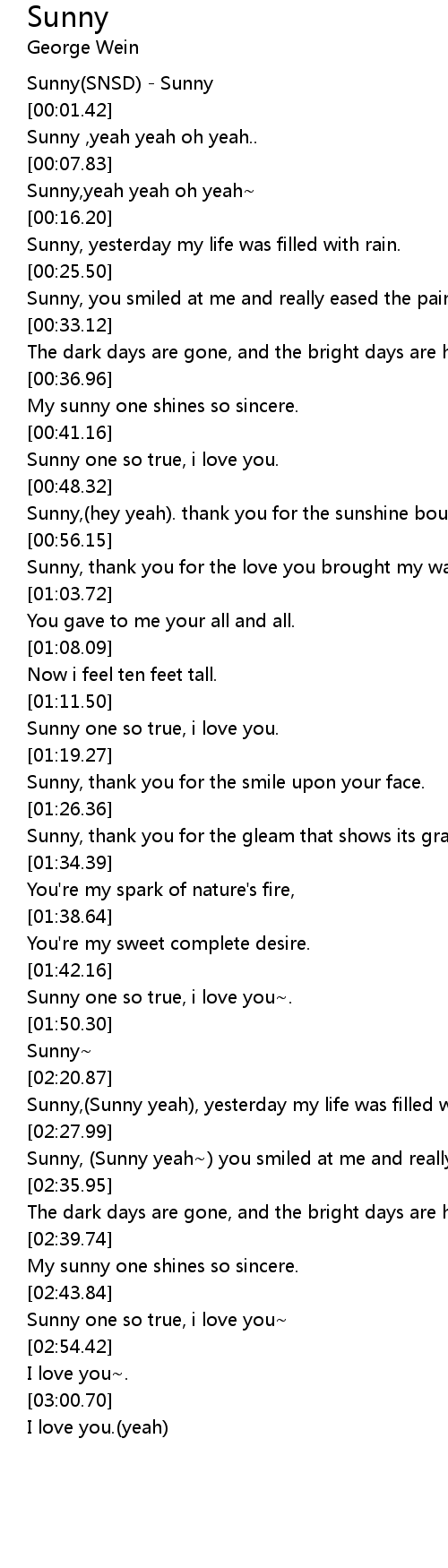 [00:41.46] Sunny one so true, i love you.