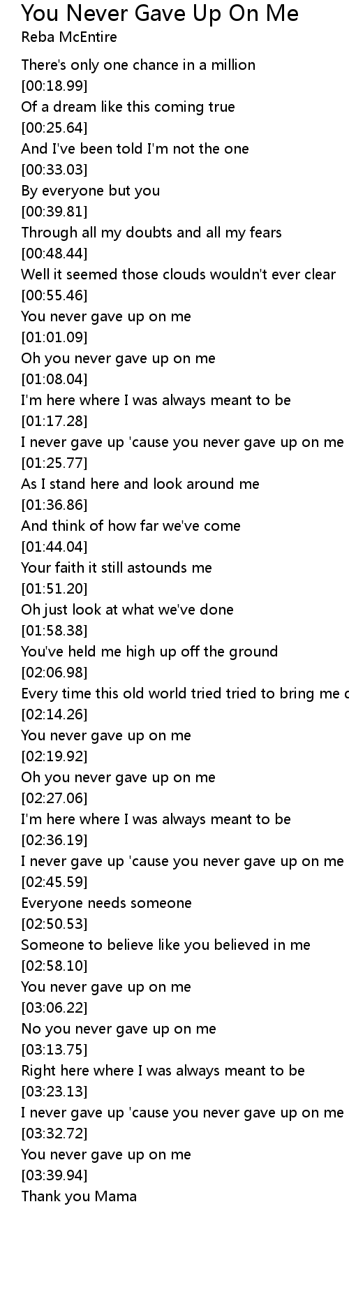 Oh you never gave up on me |