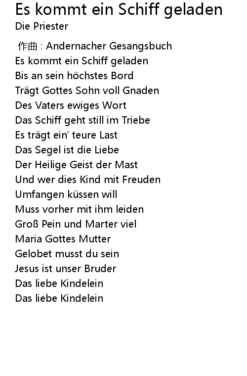 | [00:13.884] | Es kommt ein Schiff geladen |