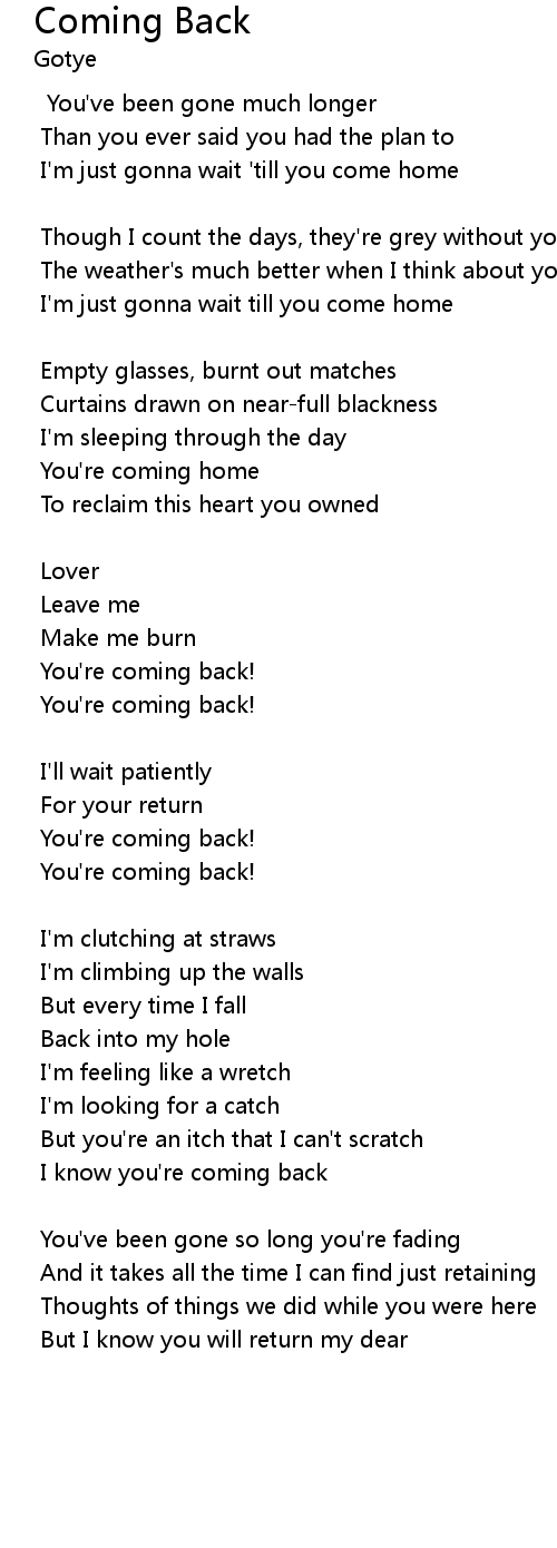 I know you're coming back |