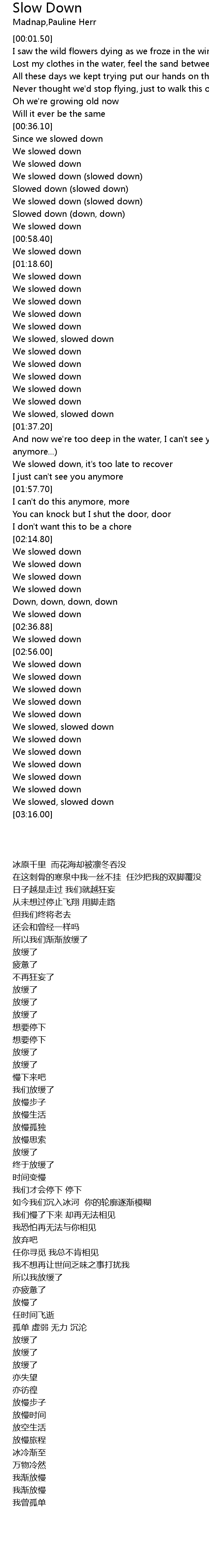 | [00:48.00] | Slowed down (slowed down) |
