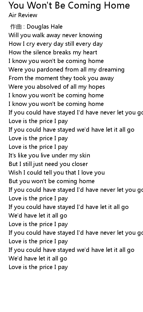 | [02:39.701] | But you won't be coming home |