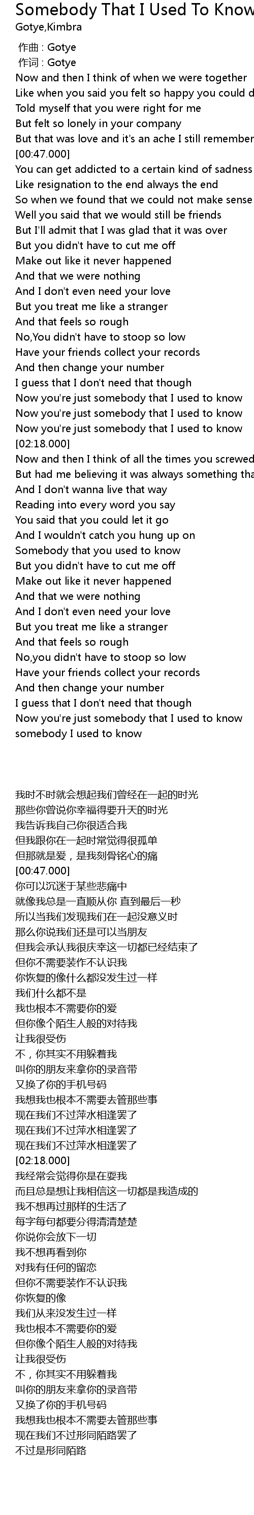 | [03:32.000] | somebody I used to know |