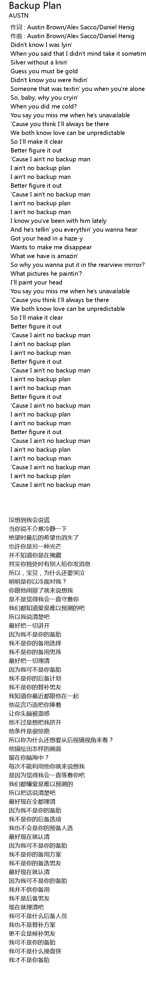 | [02:01.343] | ' Cause I ain' t no backup man |