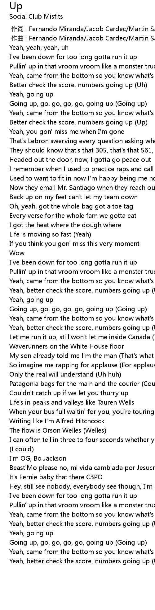 | [02:37.86] | Going up, go, go, go, go, going up (Going up) |
