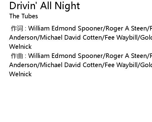 | [00:00.000] | zuò cí : William Edmond Spooner Roger A Steen Rick Marc Anderson Michael David Cotten Fee Waybill Goldstein Kessie Prairie Prince Vince Welnick |