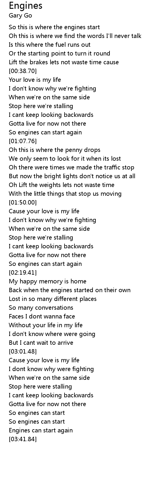 | [00:33.87] | Lift the brakes lets not waste time cause |