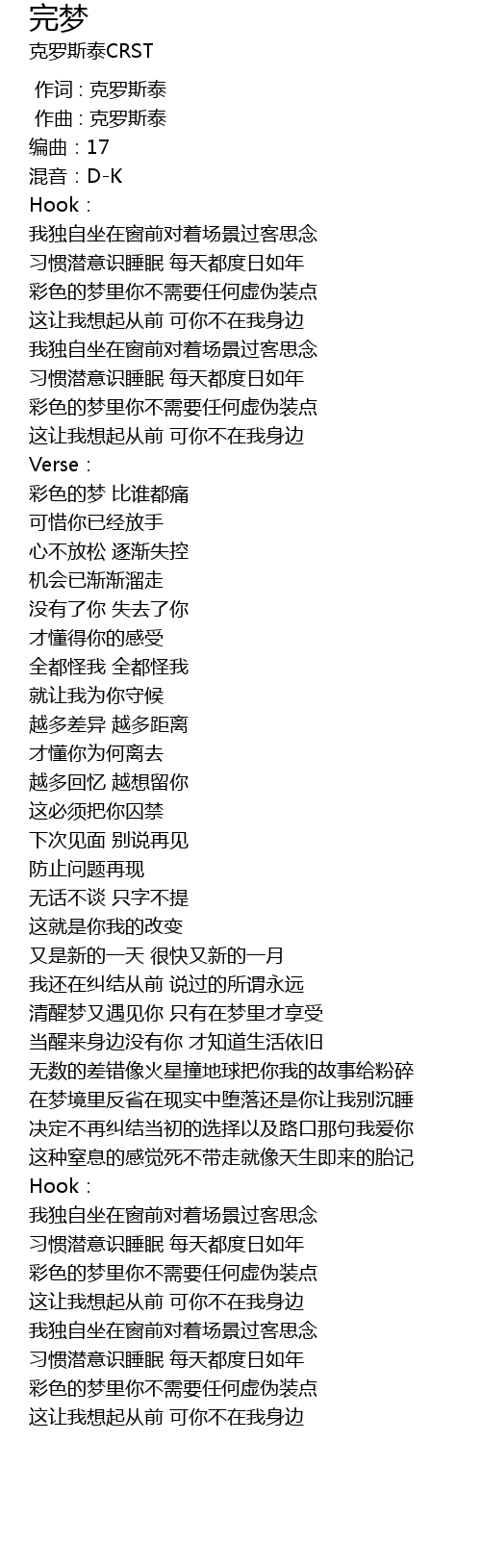 | Artist | 克罗斯泰CRST |