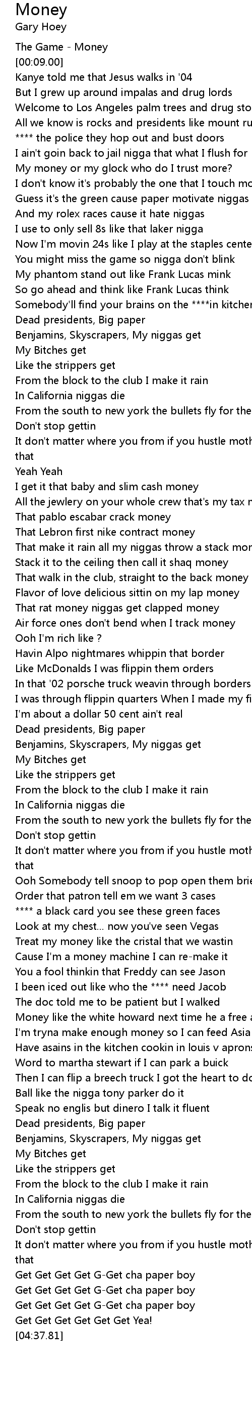 | [00:52.43] | Guess it's the green cause paper motivate niggas |
