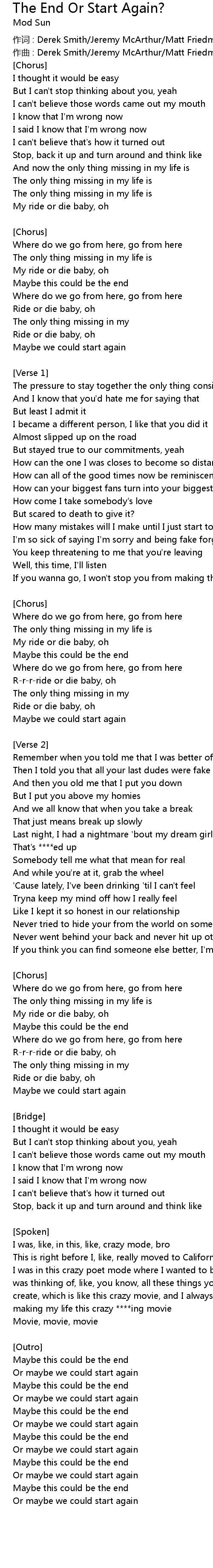 | 作词 : Derek Smith/Jeremy McArthur/Matt Friedman | |
