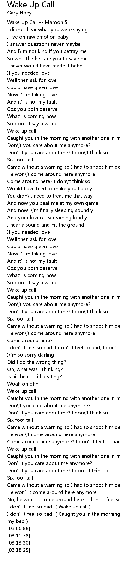 | [00:01.02] | Wake Up Call -- Maroon 5 |