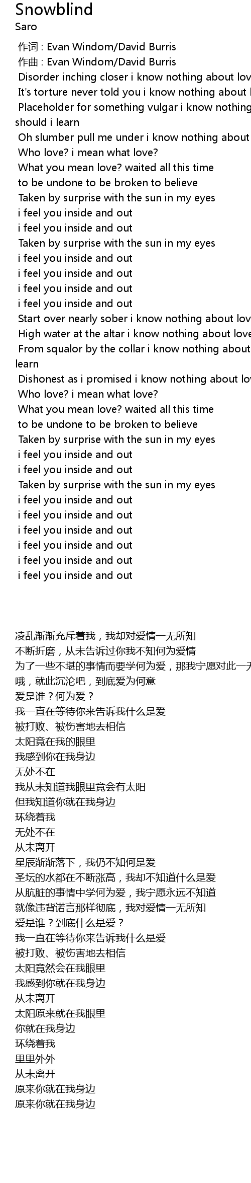 | [01:41.441] | From squalor by the collar i know nothing about love why should i learn |