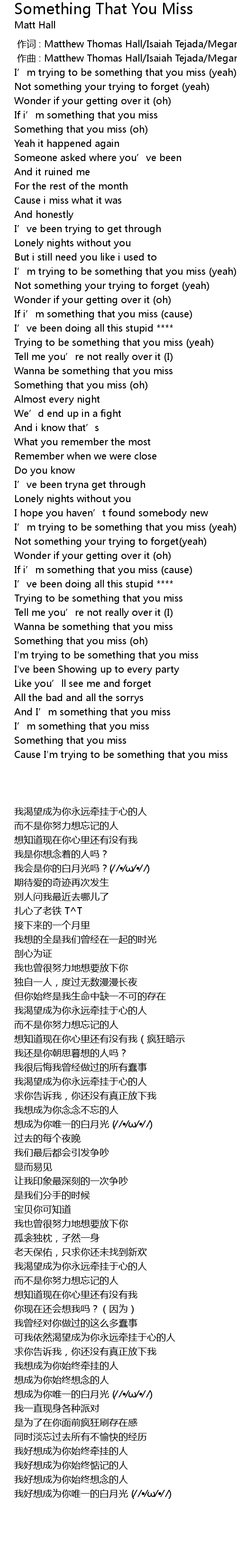 | [00:34.74] | I' m trying to be something that you miss yeah |