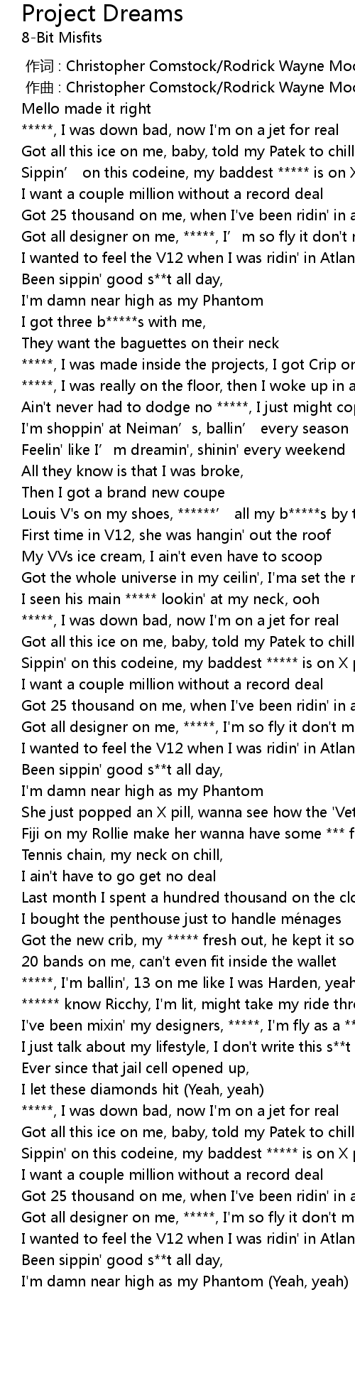 | [01:41.26] | Fiji on my Rollie make her wanna have some *** for real |