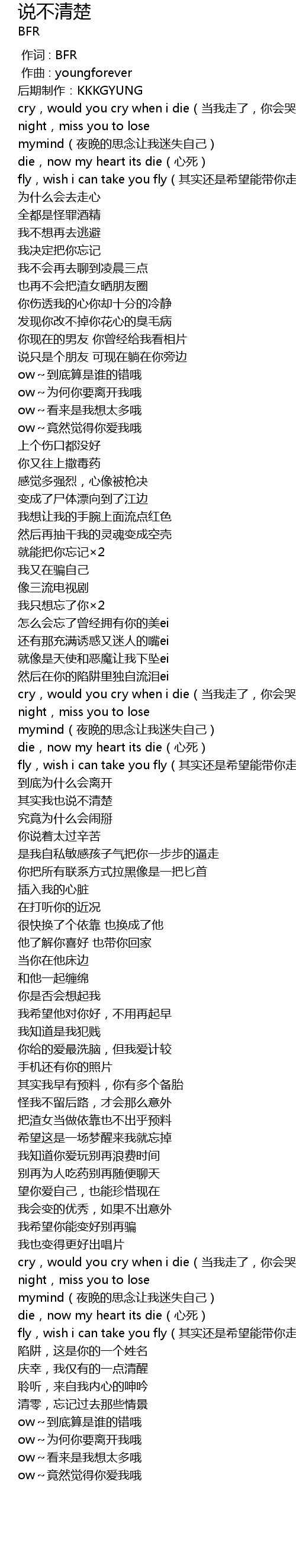 | [02:03.414] | die, now my heart its die xīn sǐ |