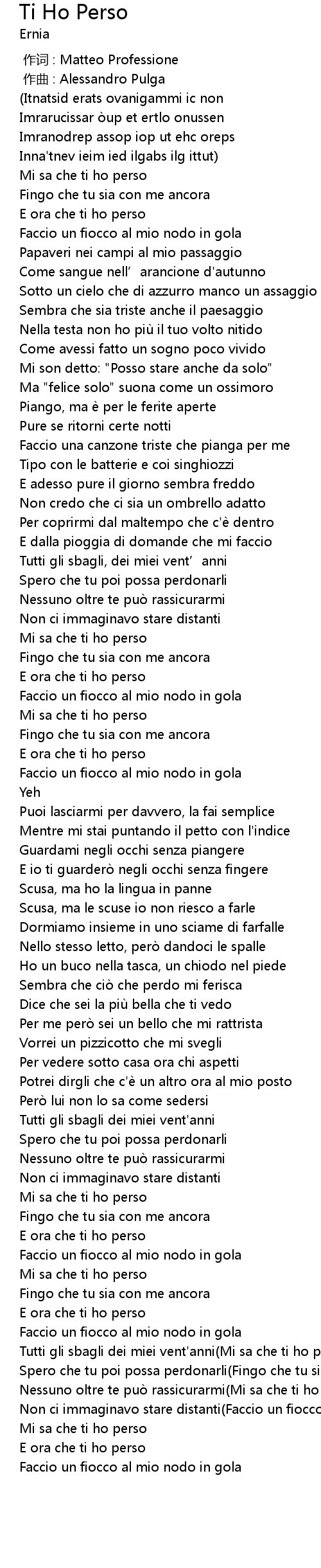 | [02:50.29] | Nessuno oltre te puo rassicurarmi Mi sa che ti ho perso |