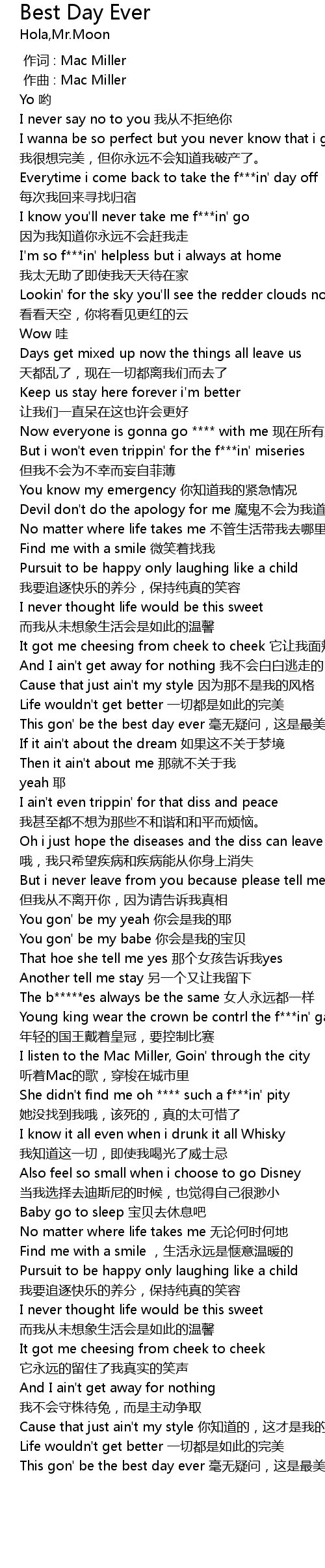 | [03:04.807] | This gon' be the best day ever hao wu yi wen, zhe shi zui mei di shi guang |
