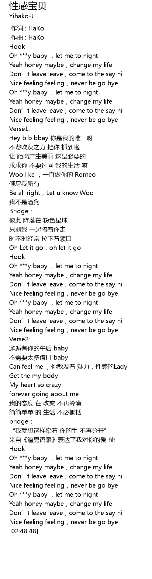 | [02:34.14] | Oh ***y baby ,let me to night |