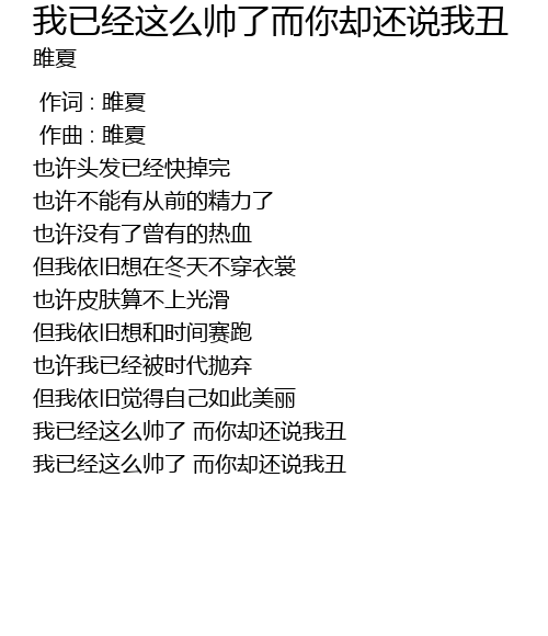 | [00:49.470] | 我已经这么帅了 而你却还说我丑 |