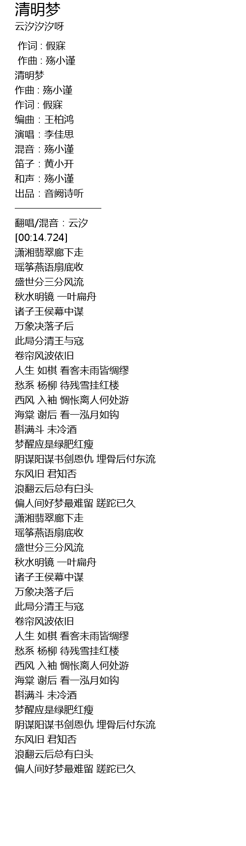 | [00:44.659] | 愁系 杨柳 待残雪挂红楼 |