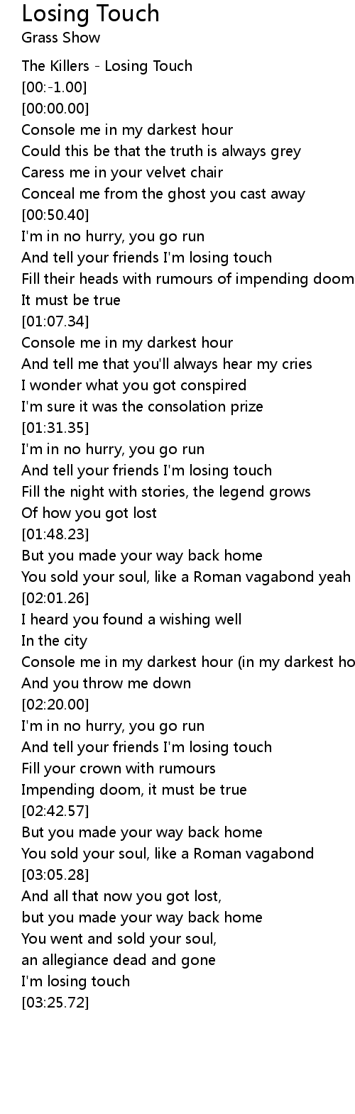 And tell your friends I'm losing touch |