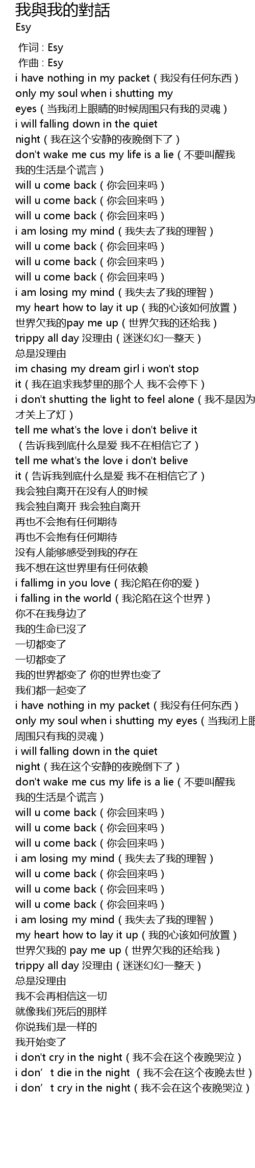 | [00:43.780] | will u come back ni hui hui lai ma |