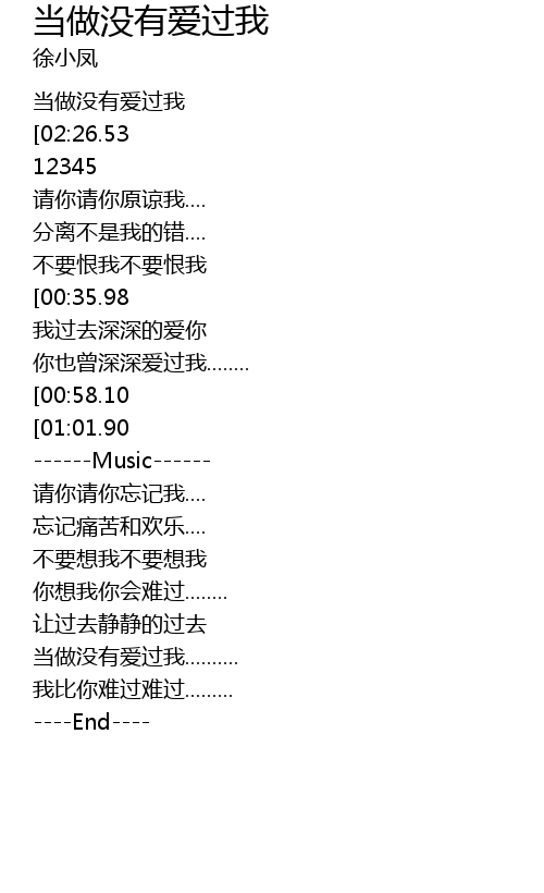 | [02:06.25] | dàng zuò méi yǒu ài guò wǒ.......... |