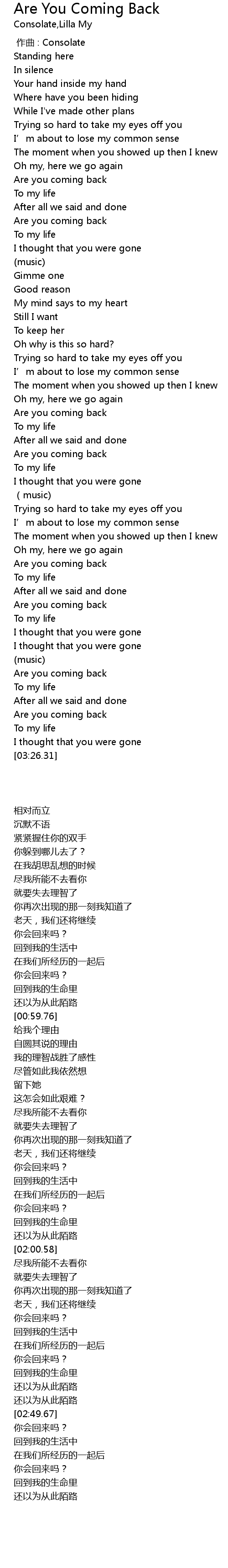 | [03:16.77] | Are you coming back |