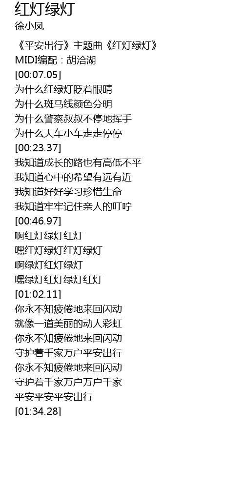 | [00:00.01] | 《平安出行》主题曲《红灯绿灯》 |