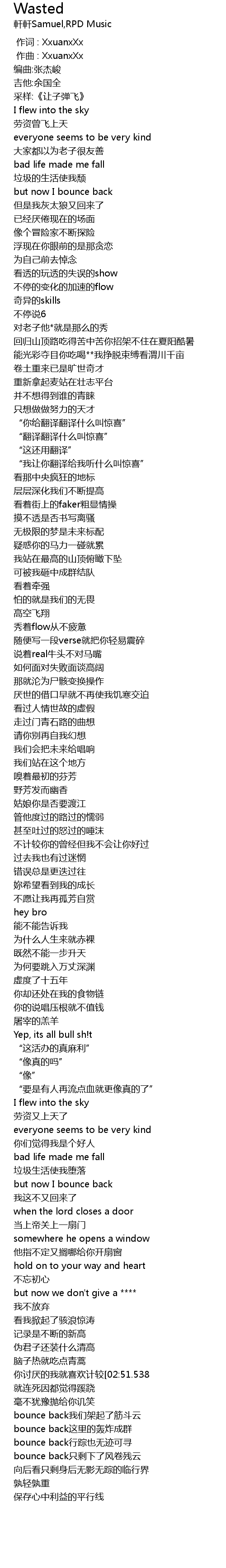 | [01:17.265] | 随便写一段verse就把你轻易震碎 |