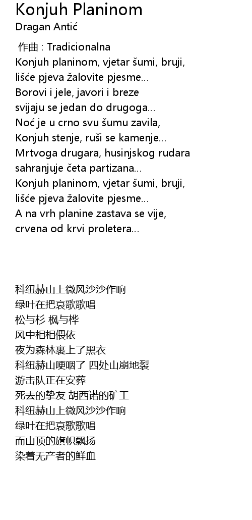 | [01:35.12] | Konjuh stenje, ruši se kamenje… |