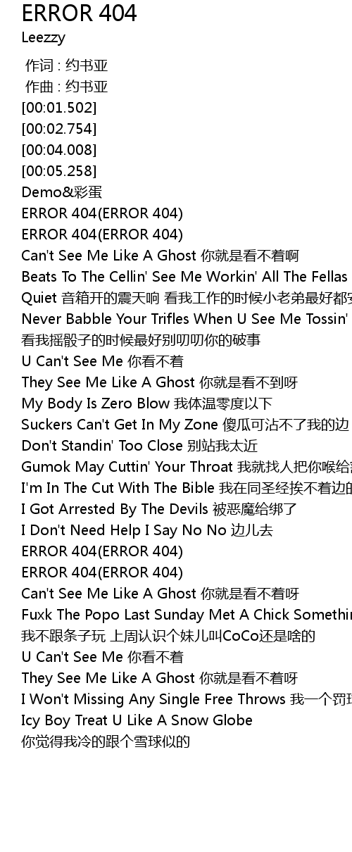 | [00:16.774] | Can' t See Me Like A Ghost ni jiu shi kan bu zhao a |