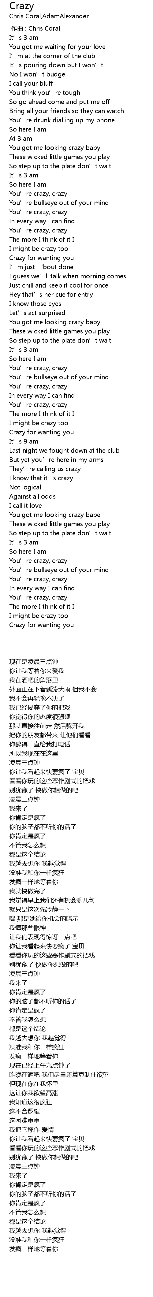 | [03:00.000] | You’re crazy, crazy |