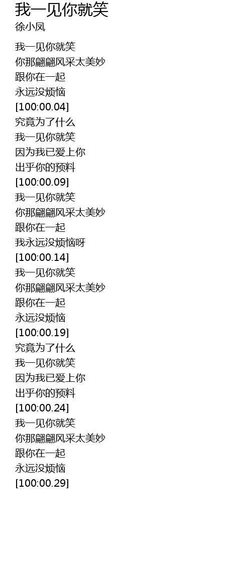 | [100:00.21] | wǒ yī jiàn nǐ jiù xiào |