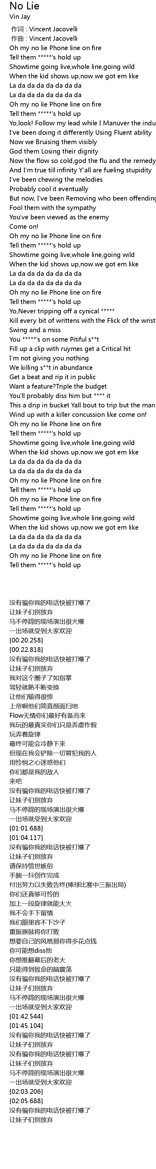| [01:50.354] | Tell them *****'s hold up |