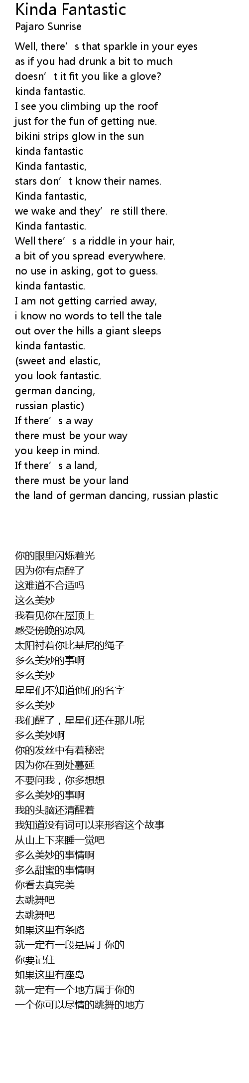 | [00:43.22] | Well, there' s that sparkle in your eyes |