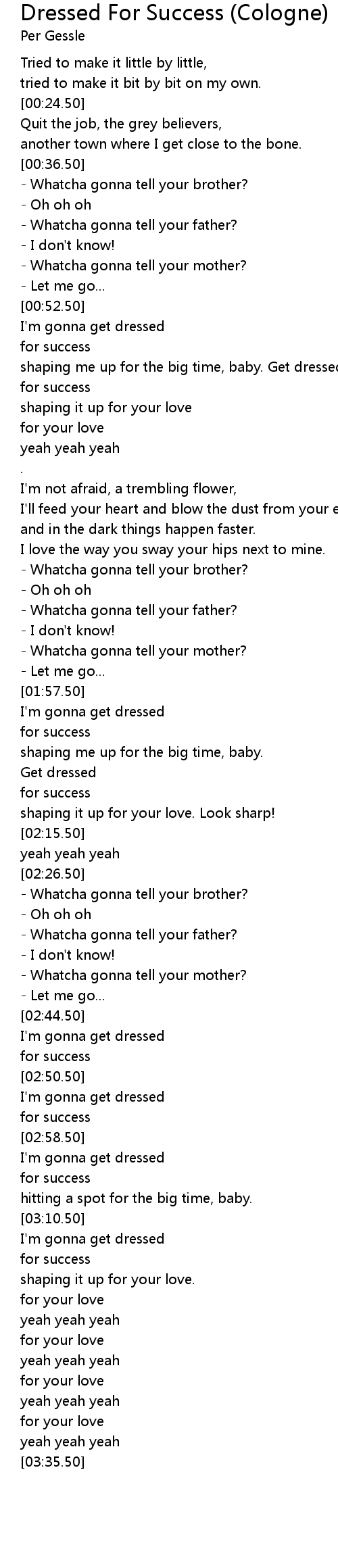 Dressed For Success (Cologne) Lyrics
